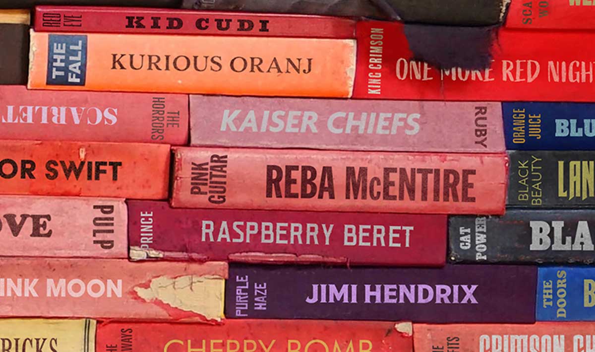 Putting it into a design was the next task and the best solution was a stack of book spines as it gives you the option to include both the song title with its colour reference and then the artist or band as the 'author'.