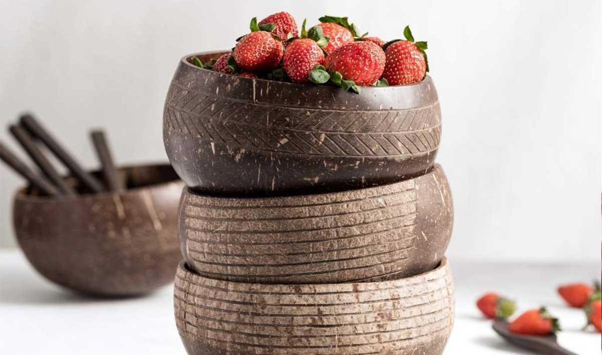 A beautiful and eco-friendly coconut bowl set, hand crafted by skilled artisan carpenters in Southern Vietnam. Each sustainable bowl is made from a real coconut and accompanied by a reclaimed wooden spoon.