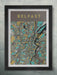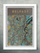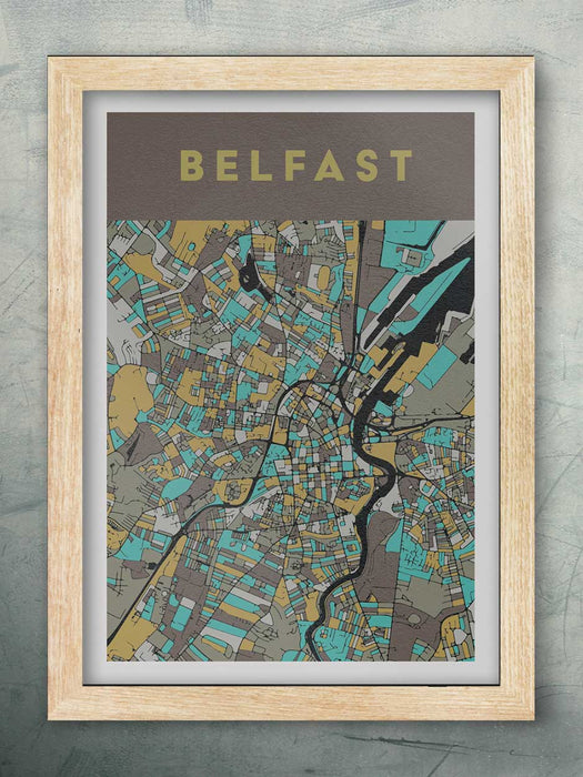 Our Belfast Poster Print is part map and part stained glass effect. Our abstract rendering of the the City of Belfast is part of a series of city street maps.