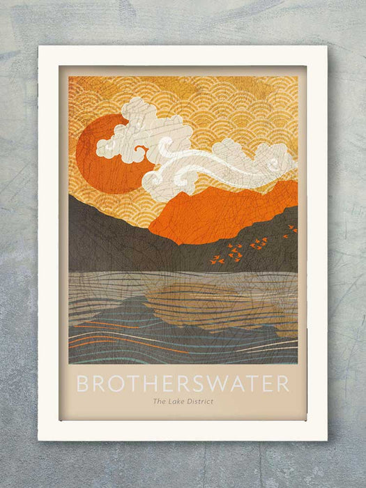 Brotherswater - lies in the Hartsop Valley at the northern end of the Kirkstone Pass. Our Brotherswater Poster Print is designed using colours and patterns to reflect the natural beauty of the Lake District National Park.