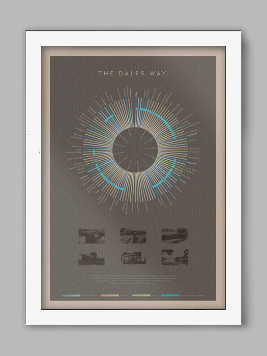Our Dales Way Poster Print celebrates the iconic walk from Ilkley to Bowness-on-Windermere. The Dales Way poster covers the route by kilometres and includes places and landmarks, as well as showing where rivers hug the route. Ideal for lovers of walking and hiking.