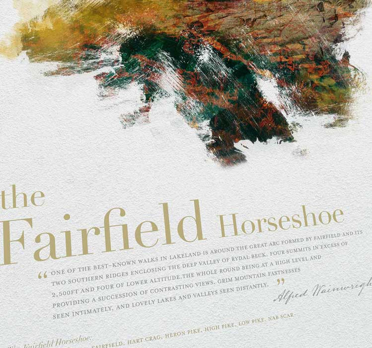 Our Fairfield Horseshoe Poster Print incorporates words by Alfred Wainwright and is designed by us here at the Northern Line. The Fairfield Horseshoe is a popular walk in the Lake District National Park, taking in many iconic Wainwright fells.