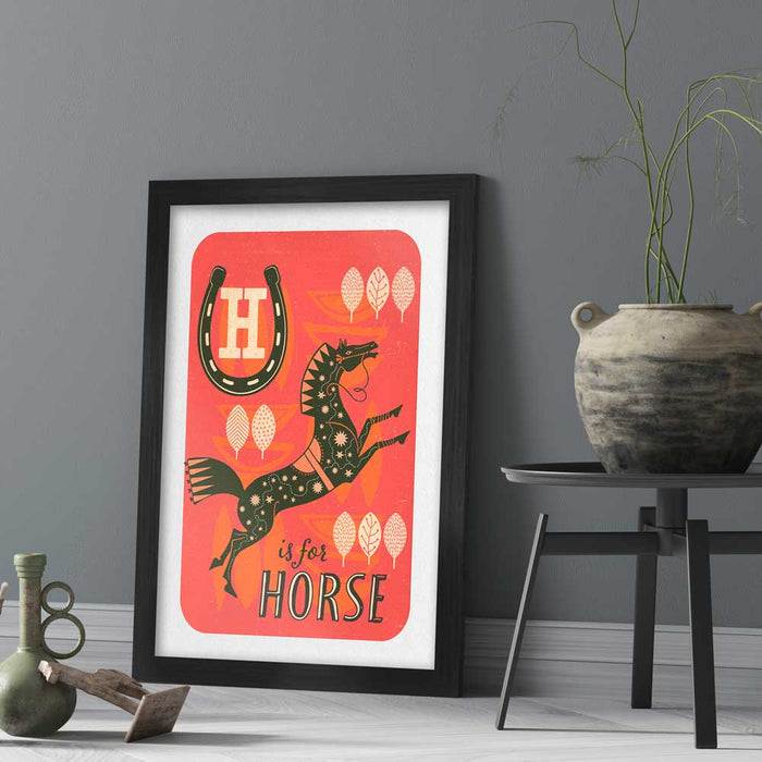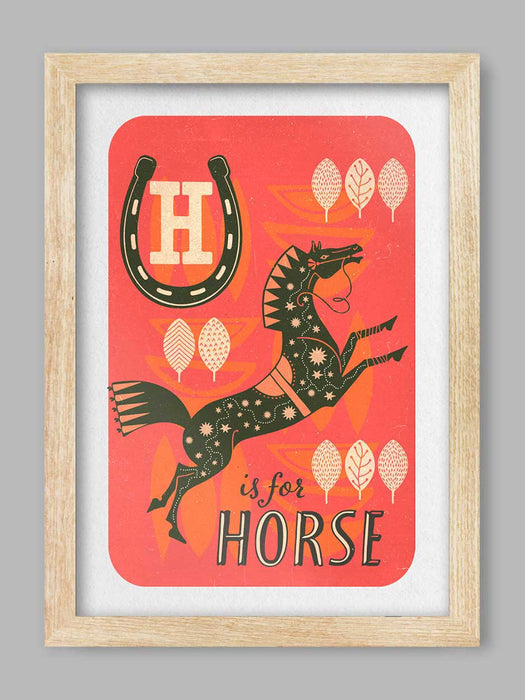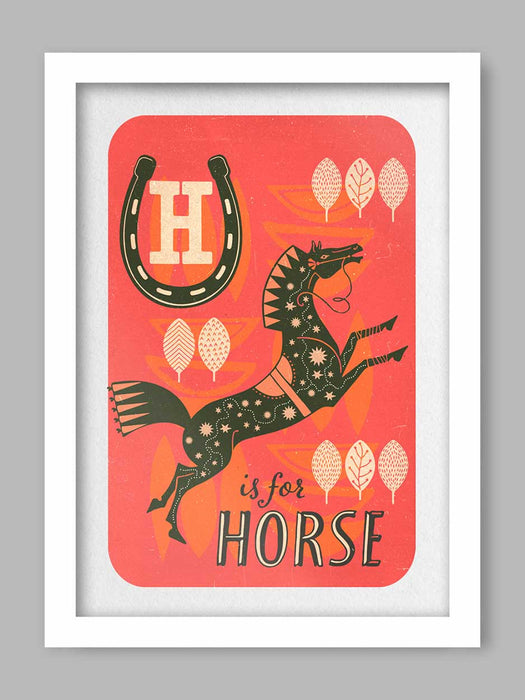 H is for Horse Poster Print is printed on a smooth 230g stock and available unframed or framed in a wooden frame with clarity+ acrylic.
