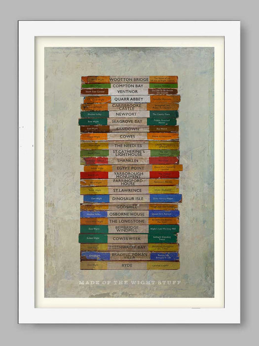 Our Isle of Wight Poster Print design is styled around a stack of old Penguin book spines. Our Isle of Wight artwork celebrates some of the special places on the island.
