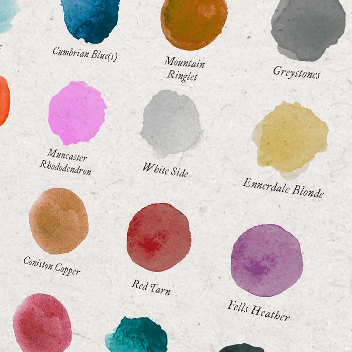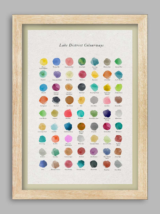 Our Lake District Colourways Poster Print features 63 colour palettes which refer to colour influenced landmarks, elements of nature and popular products in Lake District Culture. From fells such as Buttermere through to popular beers, flora and Beatrix Potter's Cecily Parsley!