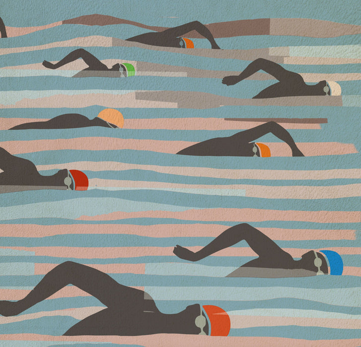 Celebrating the noble art of wild swimming. Sans wetsuit and a great way to exercise and de-stress. Bathing suit or nuddy - it's your call. Our Wild Swimming Poster Print celebrates the joy of open water swimming, especially fun here in the Lake District National Park.