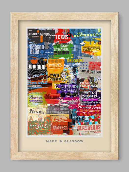 Made in Glasgow - Poster Print 'Made in Glasgow' celebrates great music from the City across all eras and genres. Each designed  'gig poster' features a date and Glasgow venue, which are genuine events.