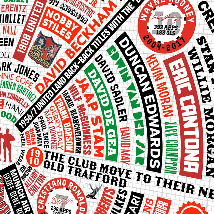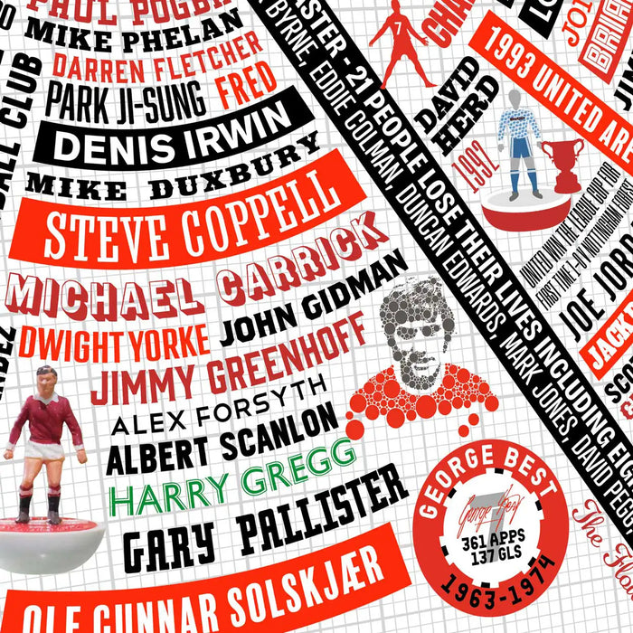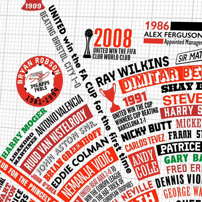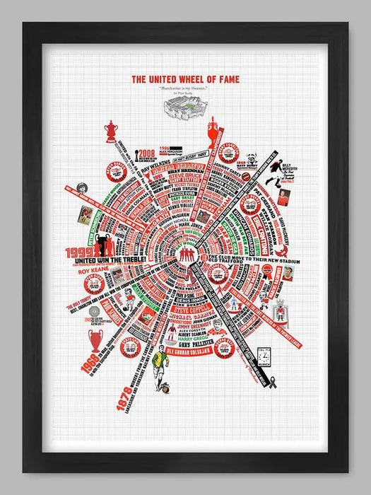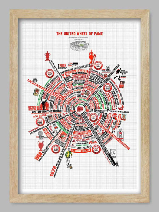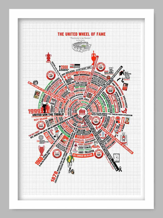 Manchester United Wheel of Fame Printed on a smooth 230g stock and available unframed or framed in a wooden frame with clarity+ acrylic.