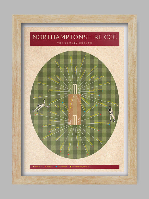 Northants CCC - Cricket Poster Print is printed on a smooth 230g stock and available unframed or framed in a wooden frame with clarity+ acrylic.