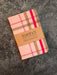 A6 pink check covered notebook, with lined paper. Contrasting elastic close and ribbon. The perfect size for handbags or suit pockets.