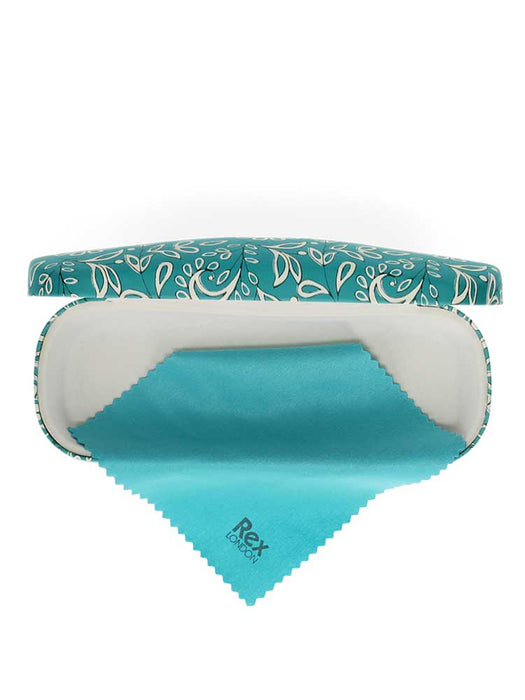 This hardshell protective blue glasses case is decorated with the pretty Radhika pattern.