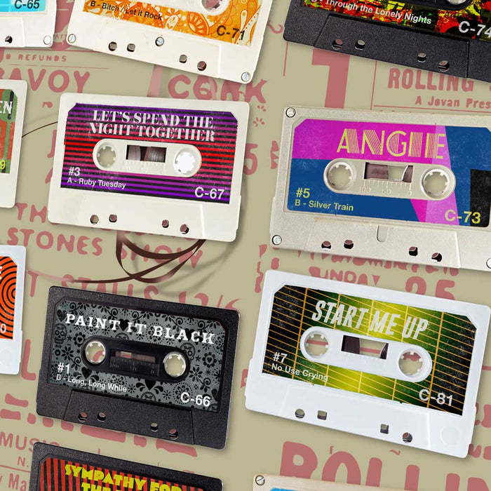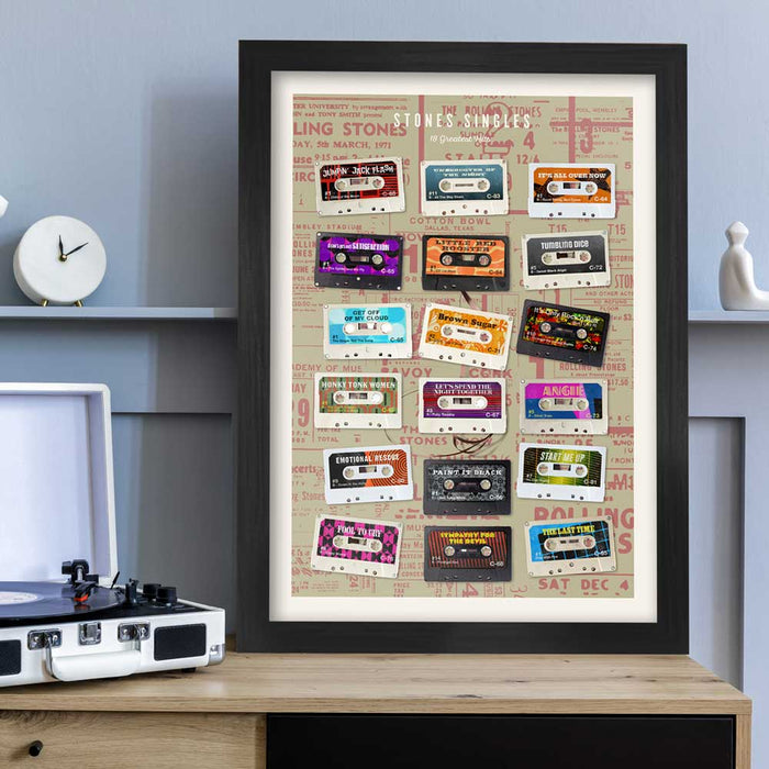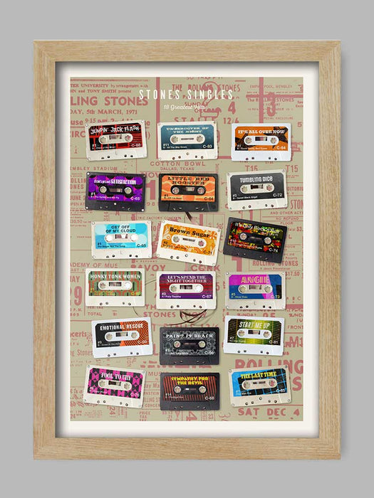 Rolling Stones Tapes - Cassette Music Poster Print celebrates some of the great singles released by The Stones