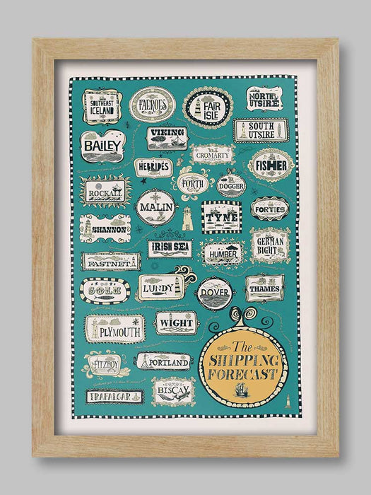 Our Shipping Forecast Poster Print is printed on a smooth 230g stock and available unframed or framed in a wooden frame with clarity+ acrylic.