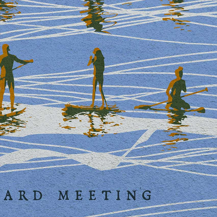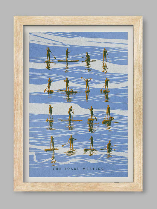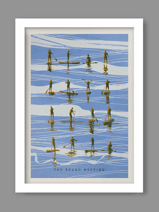 The Board Meeting - Paddleboarding Poster Print celebrates the recreation of paddle boarding in an abstract style.