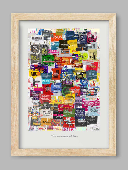 The Meaning of Live Music Poster Print is printed on a smooth 230g stock and available unframed or framed in a wooden frame with clarity+ acrylic.