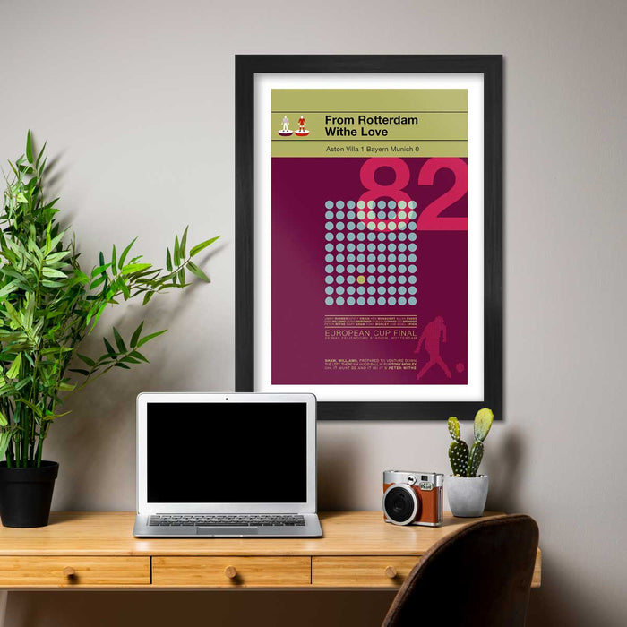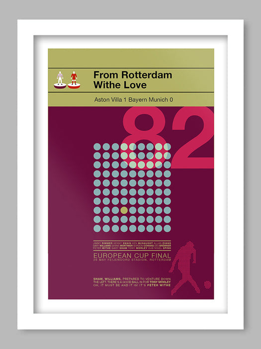 Villa 82 - Poster print celebrates the club's 1982 European Cup Final win. The modernist style reflects the team and Peter Withe's winning goal